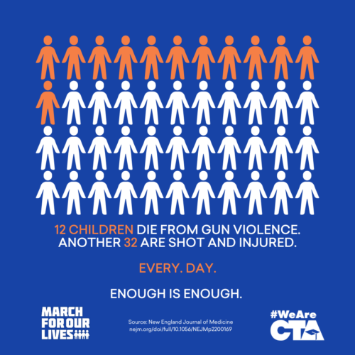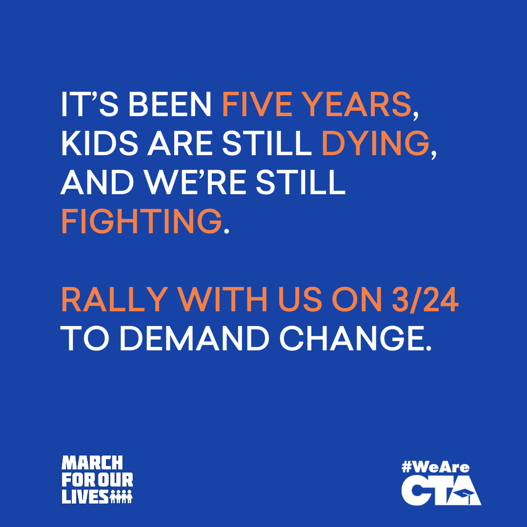 On March 24, 2023, educators, students, and community supporters will rally and lobby for gun safety in state capitols nationwide to demand that Congress end the senseless deaths and injuries caused by gun violence.